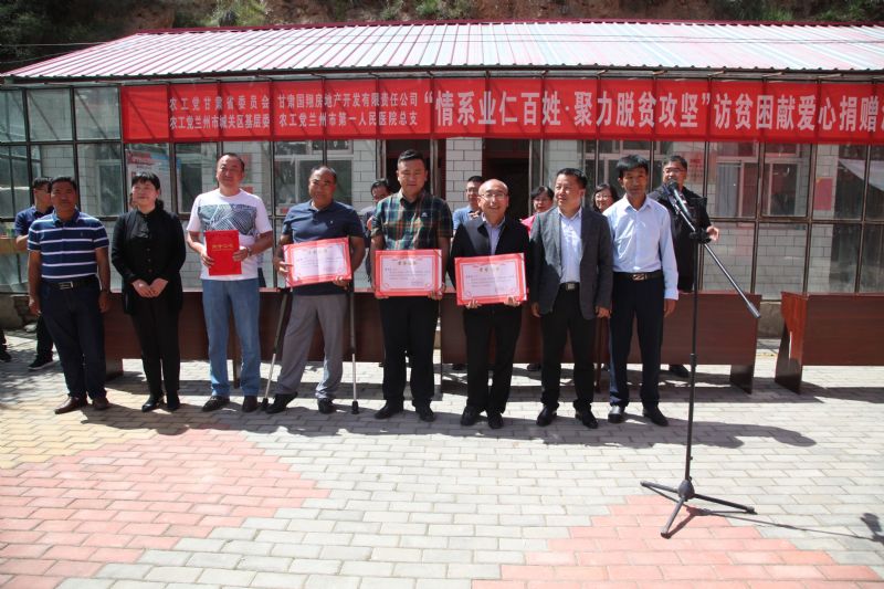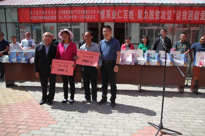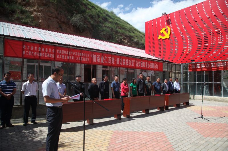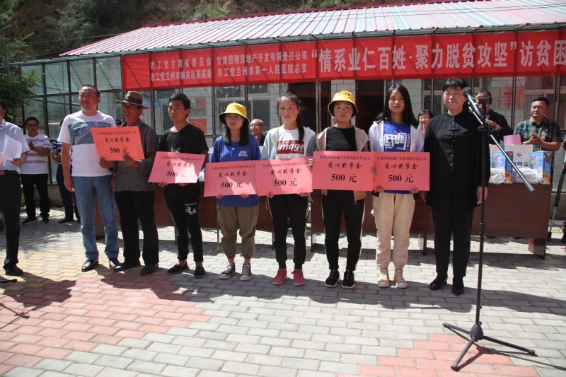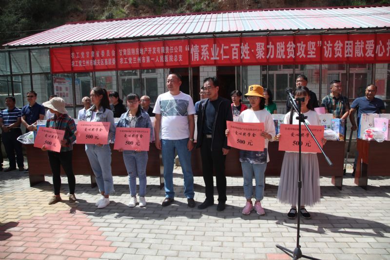 甘肃国翔房地产开发有限责任公司董事长李健国、兰州大大餐饮有限责任公司总经理傅连鸿、甘肃朵兰设备有限责任公司总经理蔡金玉、兰州懿文文化创意有限责任公司总经理郁万虎、甘肃井井装饰有限责任公司总经理周万银、榆中沛绿养殖专业合作社负责人周建强,农工党兰州市城关区教育总支主委连海平等社会爱心人士和农工党员企业家倾情捐资捐物,助力业仁村脱贫攻坚工作。业仁村包村干部、驻村帮扶工作队员、村“两委”班子成员、受助产业基地负责人、受助学生、家长代表等100余人参加活动。捐赠仪式由业仁村第一书记、驻村帮扶工作队长金凯主持。