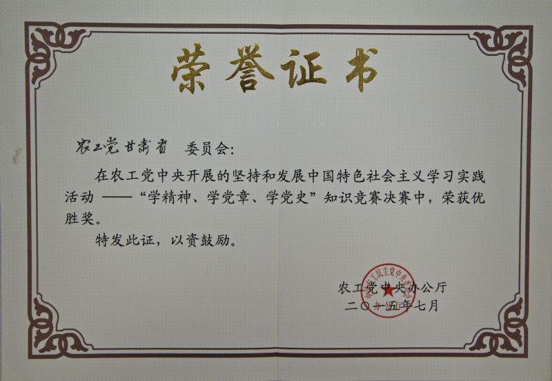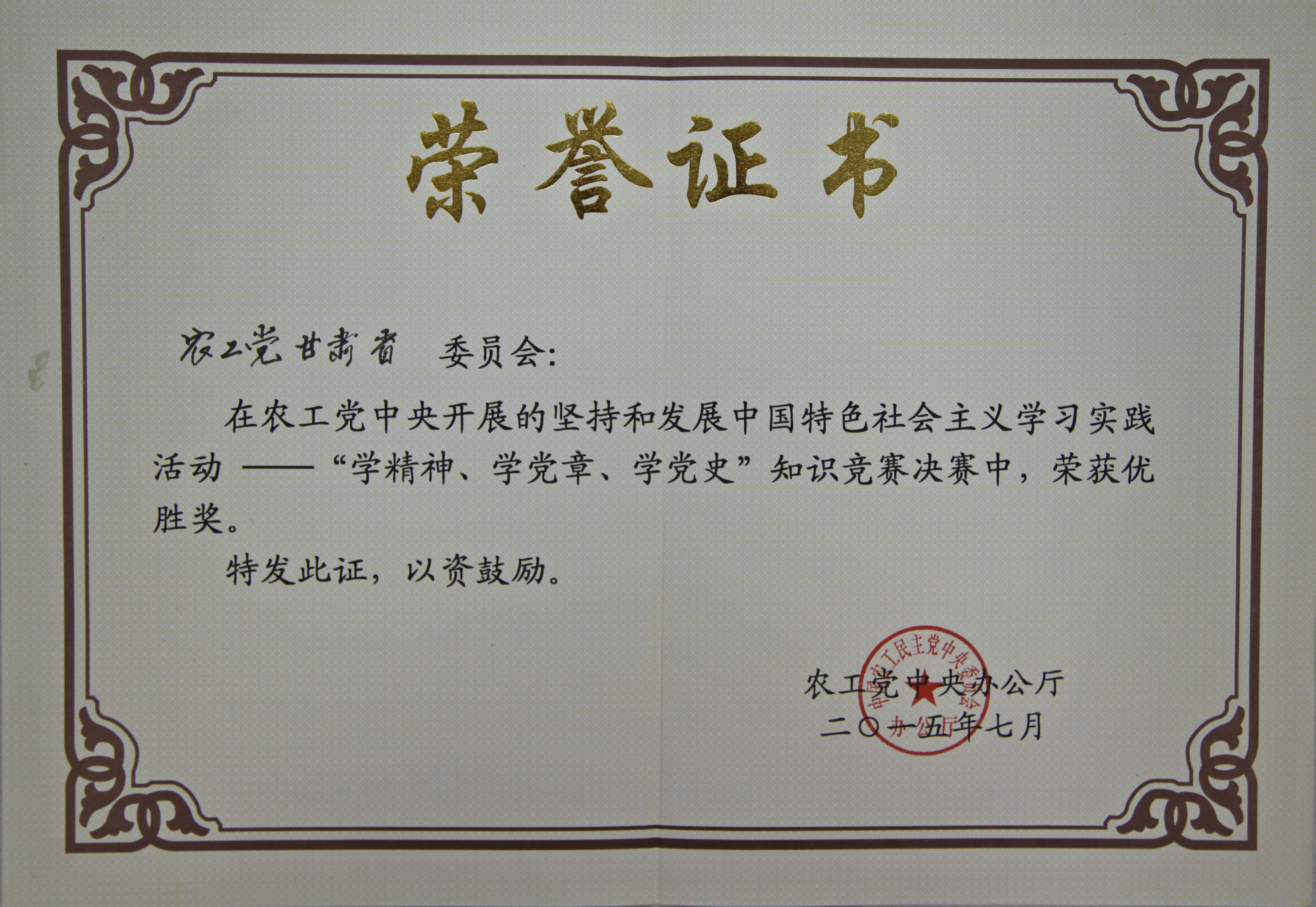 农工党中央“学精神、学党章、学党史”知识竞赛决赛优胜奖(2015年)