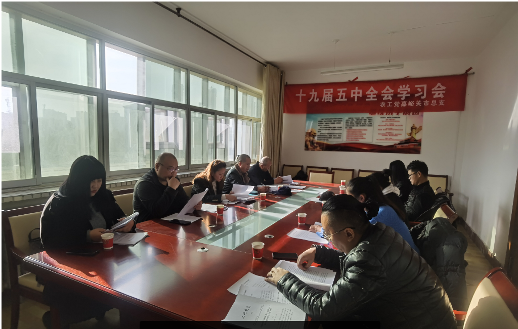 11月12日下午,农工党嘉峪关市总支组织党员召开了十九届五中全会学习会议,会议传达学习了十九届五中全会公报、市委书记李忠科在市委常委扩大会上的讲话、市长丁巨胜在市政府第十八次全体(扩大)会议暨2020年第三季度经济形势分析会上的讲话、市委副书记、统战部部长张静昌在市委统战部十九届五中全会学习会议上的讲话精神。