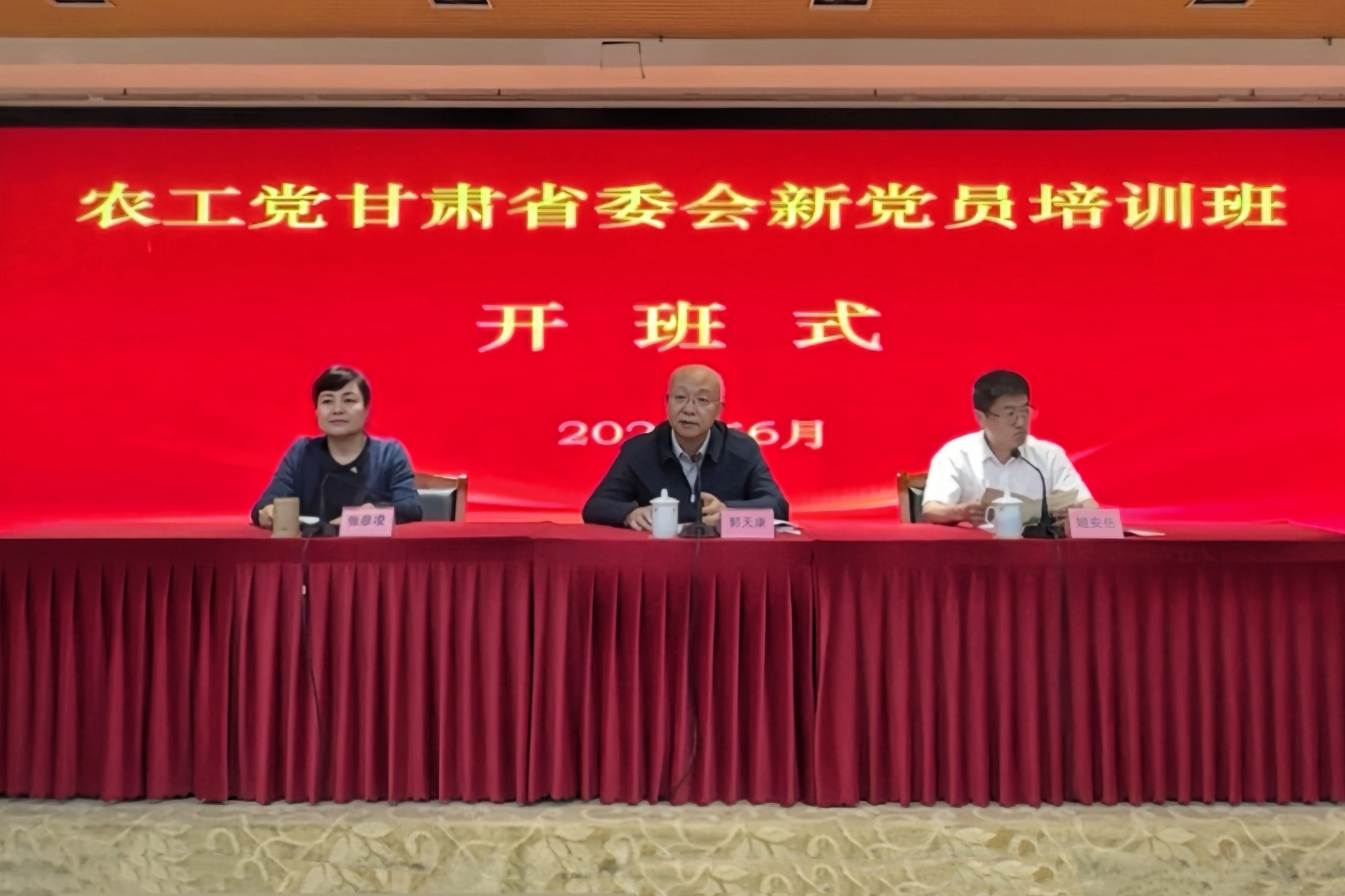 甘肃省政协副主席、农工党甘肃省委会主委郭天康出席开班式并讲话。中共甘肃省委统战部副部长、甘肃社会主义学院党组书记姬安岳主持开班式,农工党甘肃省委会专职副主委兼秘书长、内部监督委员会主任张彦凌出席开班式。