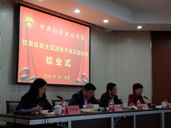 2018年10月14日至10月21日,省委统战部在中央社会主义学院举办各民主党派骨干成员培训班。甘肃省委统战部副部长万泽刚出席结业式并讲话。全省各民主党派省、市委会负责人60余人参加了培训。