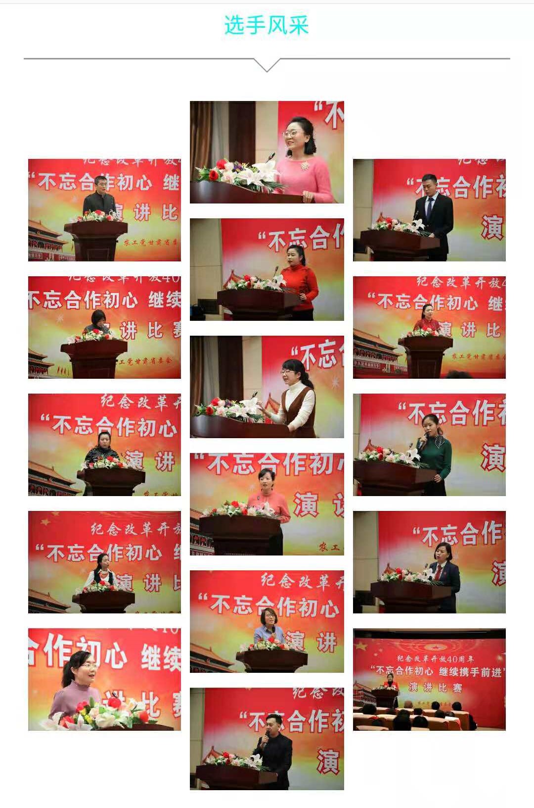 2018年11月16日,农工党甘肃省委会举办纪念改革开放40周年“不忘合作初心 继续携手前进”演讲比赛。省政协副主席、省委会主委郭天康,副主委李晓霞、刘兴荣,副巡视员马岱钧出席演讲比赛。