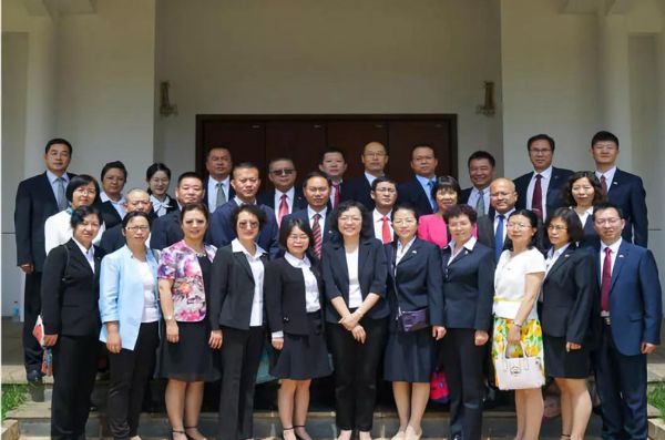 (我省5名农工党员队员在马达加斯加大使馆外合影)