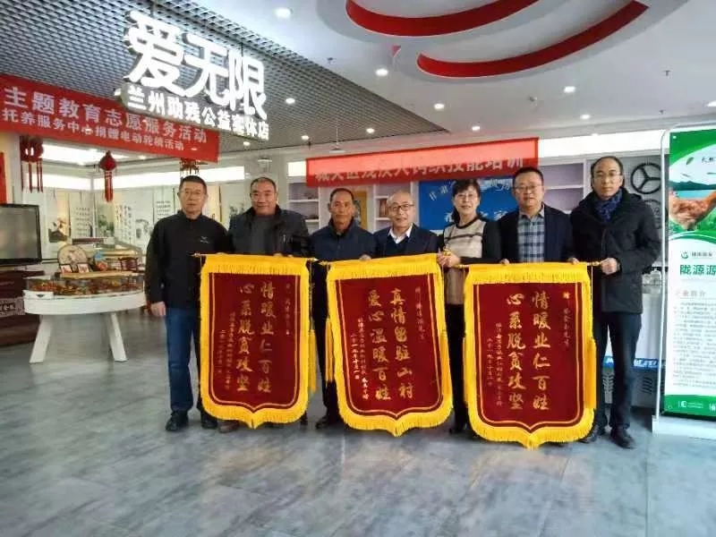12月7日,省委会精准扶贫联系点——甘南州临潭县业仁村群众朱昌平来兰州向爱心农工党员傅连鸿、周建强、蔡金玉每人送上一面旌旗,表达诚挚谢意,感谢他们为脱贫攻坚付出的爱心和奉献。