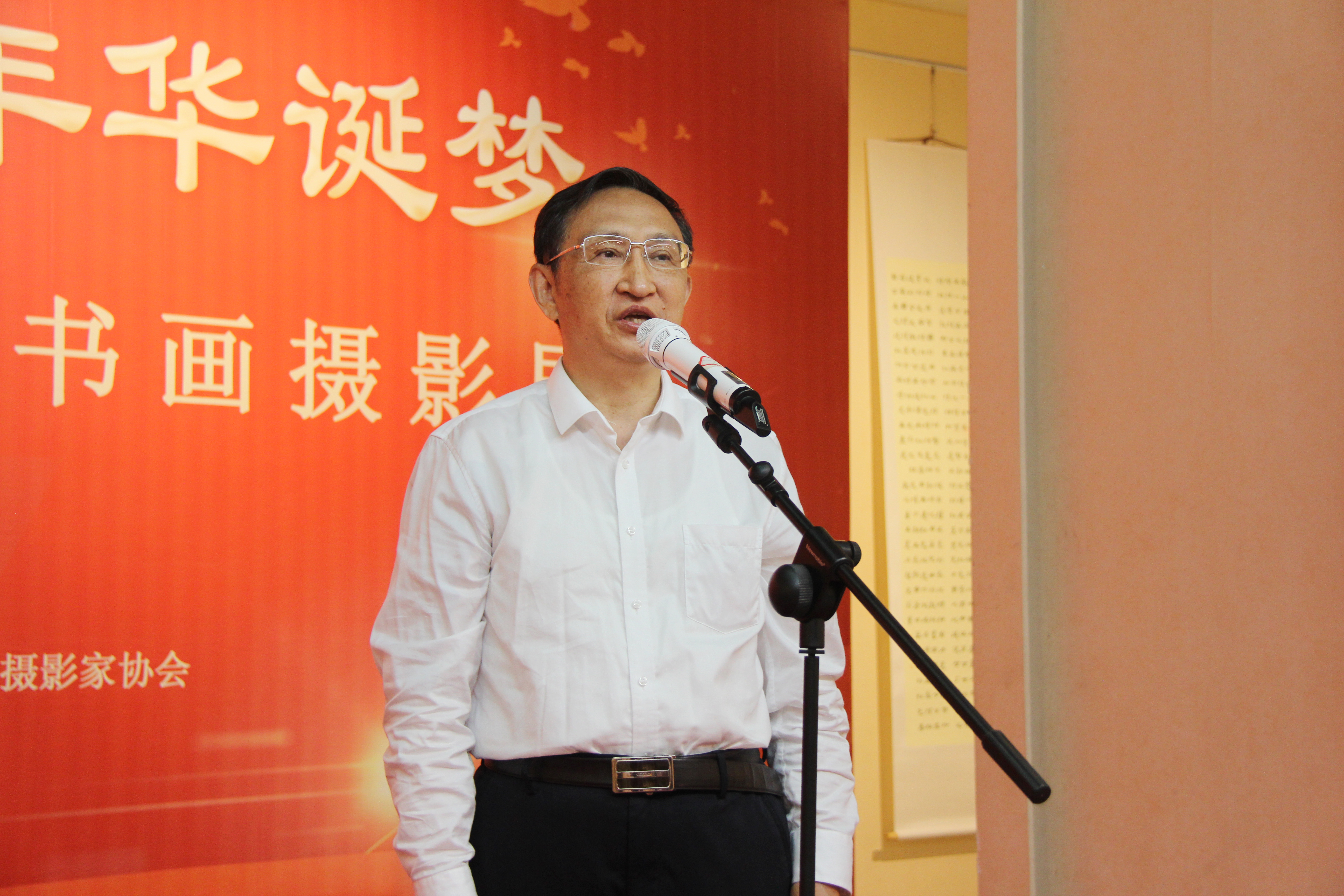 全国人大常委会委员、环境与资源保护委员会副主任、农工党中央专职副主席龚建明出席活动并宣布书画摄影展开幕;甘肃省政协副主席、农工党甘肃省委会主委郭天康致辞;甘肃省文学艺术界联合会党组成员、副主席王正茂致辞。农工党甘肃省委会专职副主委张彦凌主持开幕式。