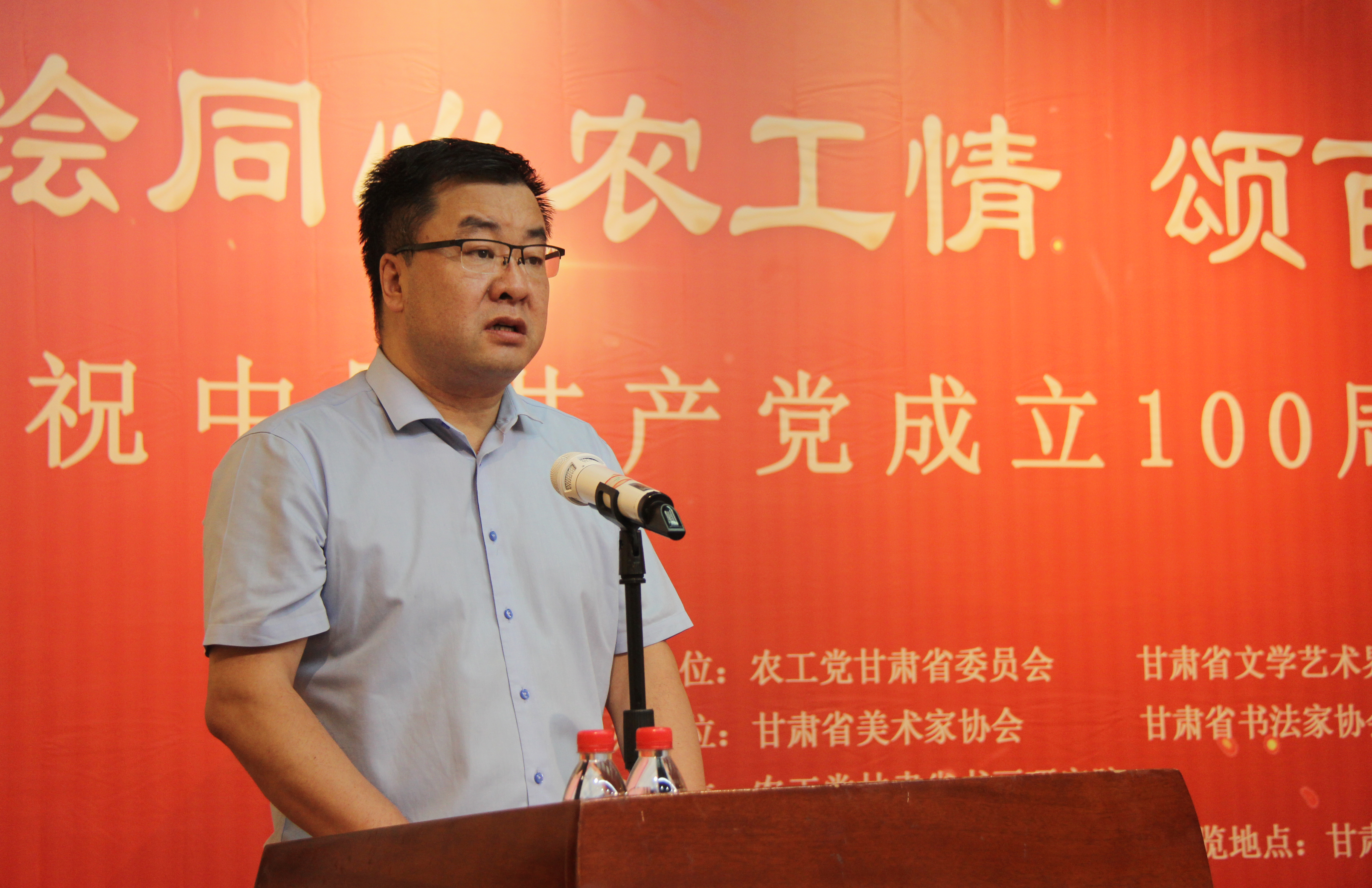 2021年7月13日上午,为庆祝中国共产党成立100周年,由农工党中央书画院指导,农工党甘肃省委会、甘肃省文学艺术界联合会主办,甘肃省美术家协会、甘肃省书法家协会、甘肃省摄影家协会协办,农工党甘肃省书画研究院承办的“绘同心农工情·颂百年华诞梦”书画摄影展在甘肃艺术馆开幕。