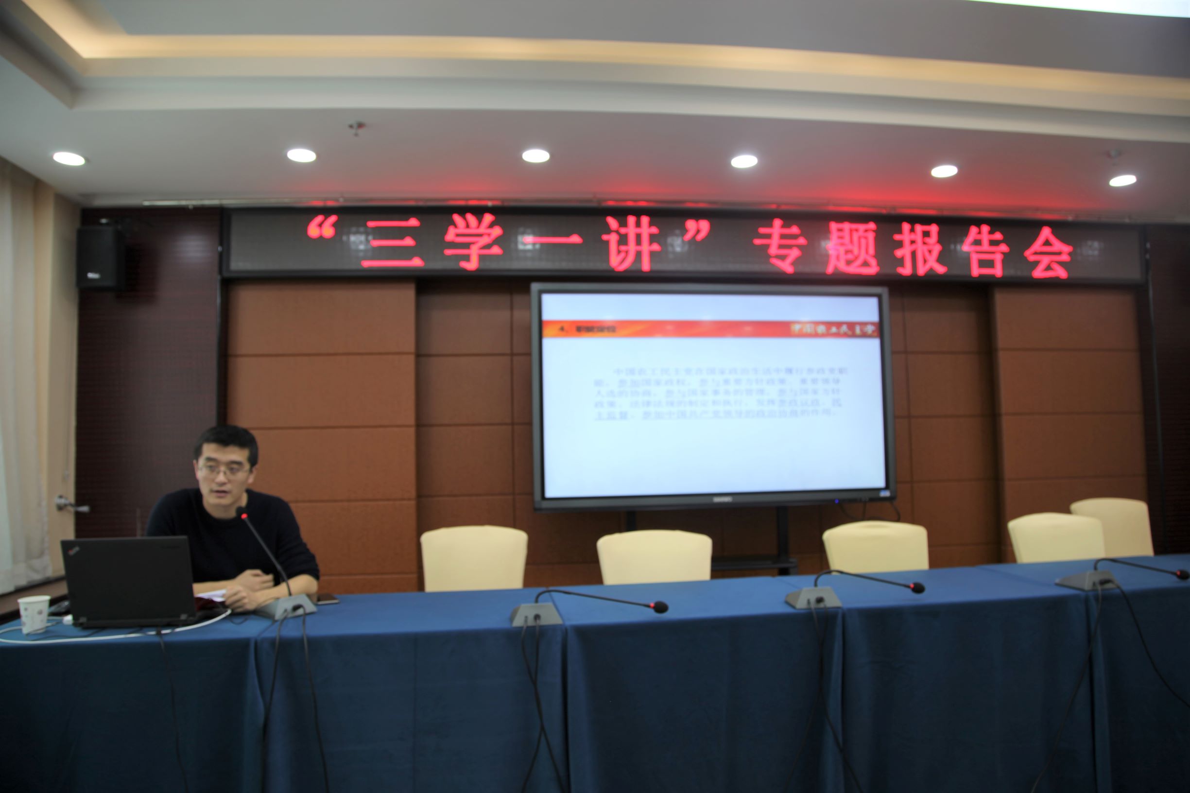 2018年 11月16日上午,在省委会举办的骨干党员培训班上开展“不忘合作初心,继续携手前进”主题教育活动“三学一讲”专题报告会上,省委会副主委李晓霞作了题为《如何做好参政议政、反映社情民意信息工作》的报告,全省骨干党员50余人参加听课。