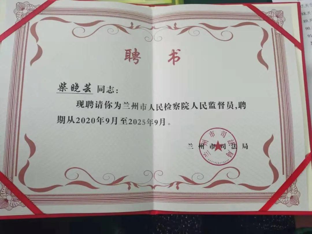 农工党员柴晓芸获聘兰州市人民检察院人民监督员
