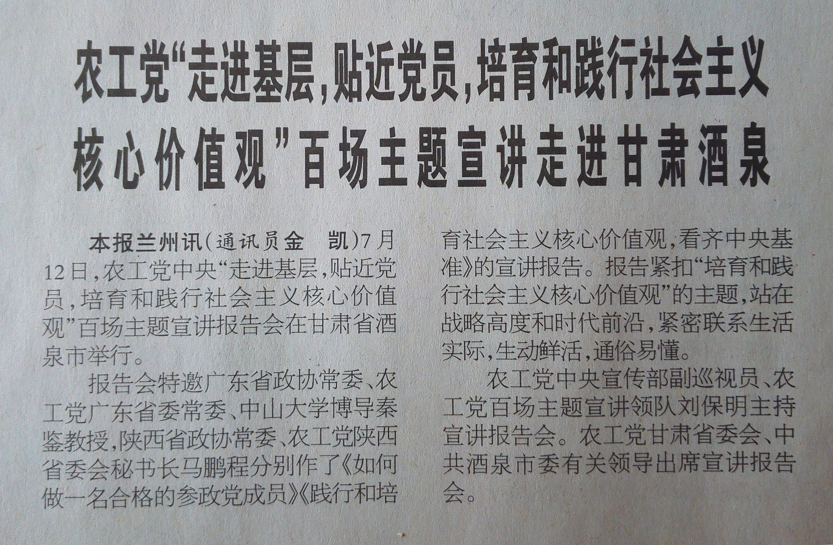 民主协商报:农工党“百场主题宣讲”走进甘肃酒泉