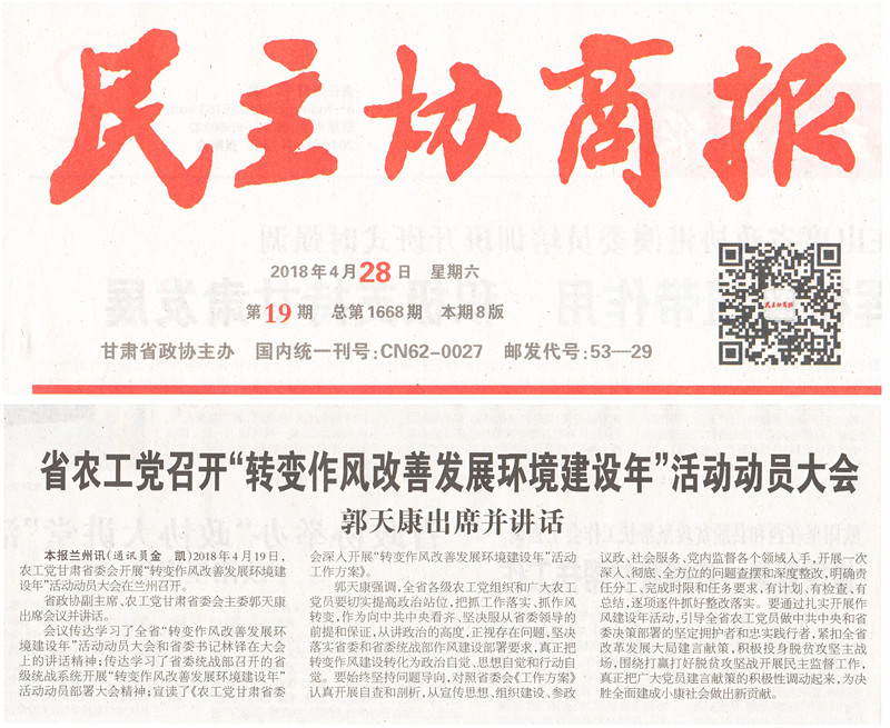 民主协商报:农工党省委会召开“转变作风改善发展环境建设年”活动动员大会