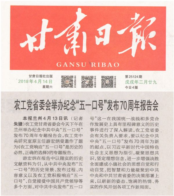 甘肃日报:农工党甘肃省委会举办纪念“五一口号”70周年专题报告会