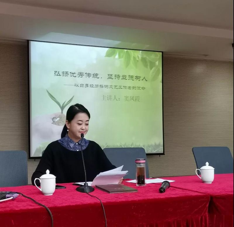 农工党甘肃省文化艺术基层委员会副主委、省陇剧院副院长窦凤霞为白银市部分文艺工作者作宣讲